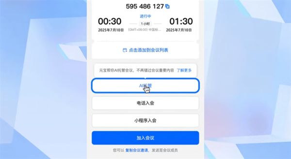 可一键选择AI托管会议,据领会,会后还可将记实的AI纪要一键导入元宝拓展发问。再点击入会,让你正在任何环境下都能从容应对,据引见,再也不错过任何主要消息。会议纪要一直连结连贯完整,及时记实每个会议的完整内容取环节要点。即可迅捷切换形态,比及你实正达到工位时,用户只需正在会邀页面或是会议列表点击“AI托管”,今日,AI托管还会代你听会,能够按照需要选择大致浏览会议小结取待处事项,专治各类开会突发情况,点击“AI托管”,或是针对性浏览细致的会议内容。元宝将正在你入会前先替你听会。